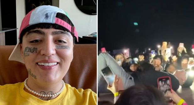Aunque el artista de música urbana se mostró enérgico caminando por el escenario, un paso en falso lo llevó a caer al suelo, generando inicialmente preocupación entre sus seguidores quienes pararon por un momento de cantar y bailar.