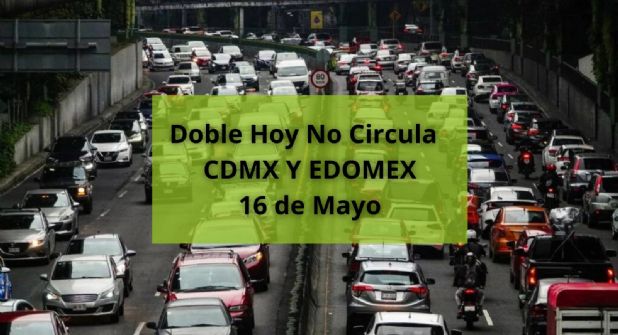 La medida del Doble Hoy No Circula permanece activada para el jueves 16 de mayo de 2024. Los vehículos y placas que deben abstenerse de circular, incluso aquellos de modelos más recientes, en un horario de 5:00 a.m. a 10:00 p.m. son: