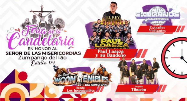 No dejes pasar la oportunidad de ser parte de esta tradición y gozar de la mejor música, shows y entretenimiento en la Feria de la Candelaria Zumpango del Río 2025. Este miércoles 4 de febrero, Paul Loaeza, Proyecto Tiburón y Extraños Visitantes te esperan.