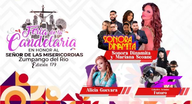 No dejes pasar la oportunidad de ser parte de esta gran verbena de Guerrero. Este 5 de febrero, La Sonora Dinamita, Mariana Seoane, Alicia Guevara y Colectivo Artístico Futuro te esperan en la Feria de la Candelaria Zumpango del Río 2026 para vivir una noche inigualable.