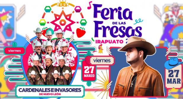 La Feria de las Fresas Irapuato 2026 continúa con una agenda llena de música y diversión. Este 27 de marzo es una oportunidad ideal para disfrutar dos grandes conciertos con Los Cardenales y Los Invasores de Nuevo León y Edén Muñoz.