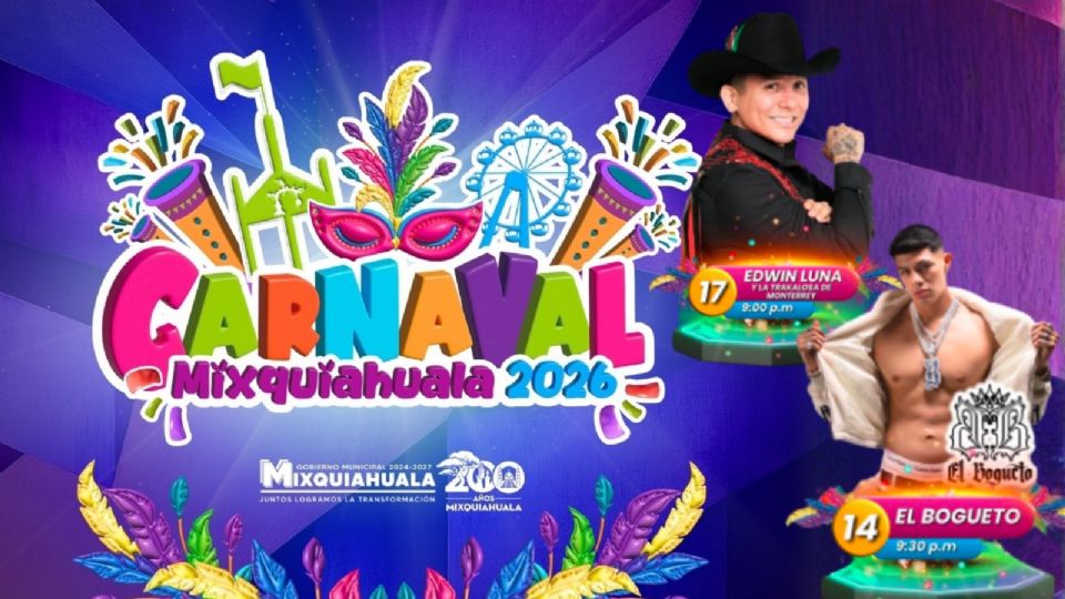 Carnaval Mixquiahuala 2026: Cartel de artistas que se presentarán del 13 al 22 de febrero en Hidalgo