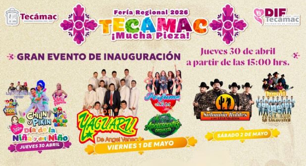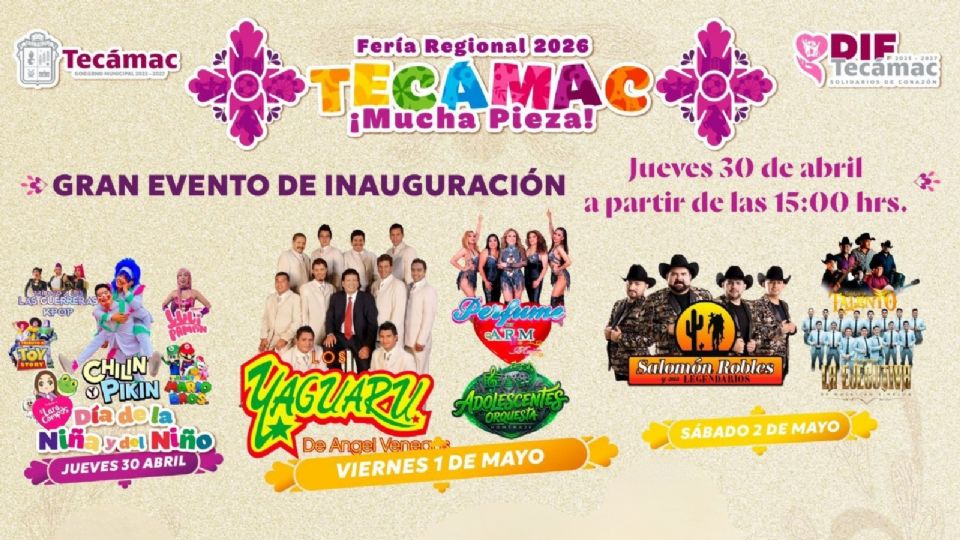 El Estado de México se prepara para una de sus celebraciones más esperadas del año; la Feria Regional Tecámac 2026, que ha revelado finalmente su cartel oficial, prometiendo una jornada llena de música, cultura y alegría bajo el lema "¡Mucha Pieza!".